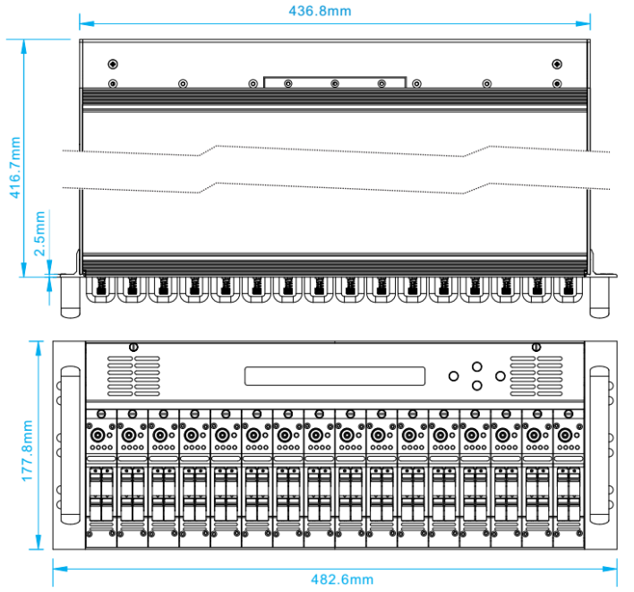 483 x 417 x 178mm,寬(包含兩邊拉手耳朵)x深x高(4U高度) |